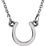 The polished horseshoe pendant measures just 10.1 x 8.9 mm, creating a subtle yet meaningful statement piece. Suspended from a fine 1mm cable chain with adjustable 16-18 inch length, this necklace sits beautifully at the collarbone and complements both casual and formal looks.